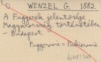 WENZEL G. 1882 A Fuggerek jelentösége Magyarország történetében.