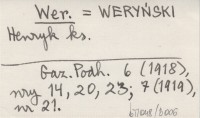 Wer. WERYŃSKI Henryk ks. Gazeta Podhalańska 6 (1918), nr 14, 20, 23 ; 7 (1919), nr 21.