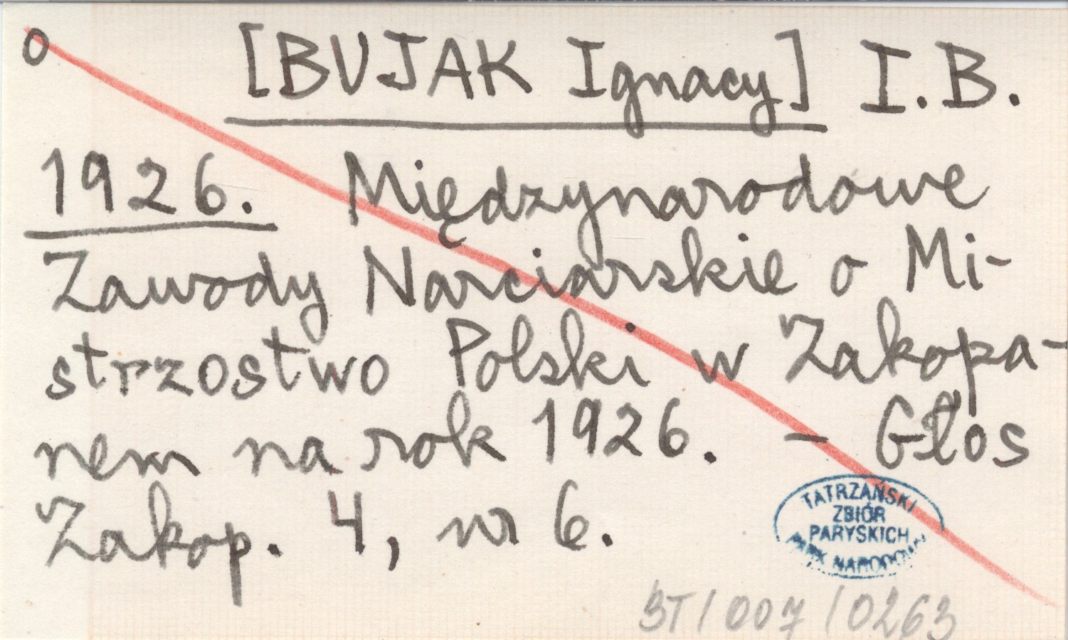 I. B. [BUJAK Ignacy] 1926 Międzynarodowe Zawody Narciarskie o Mistrzostwo Polski w Zakopanem na rok 1926.