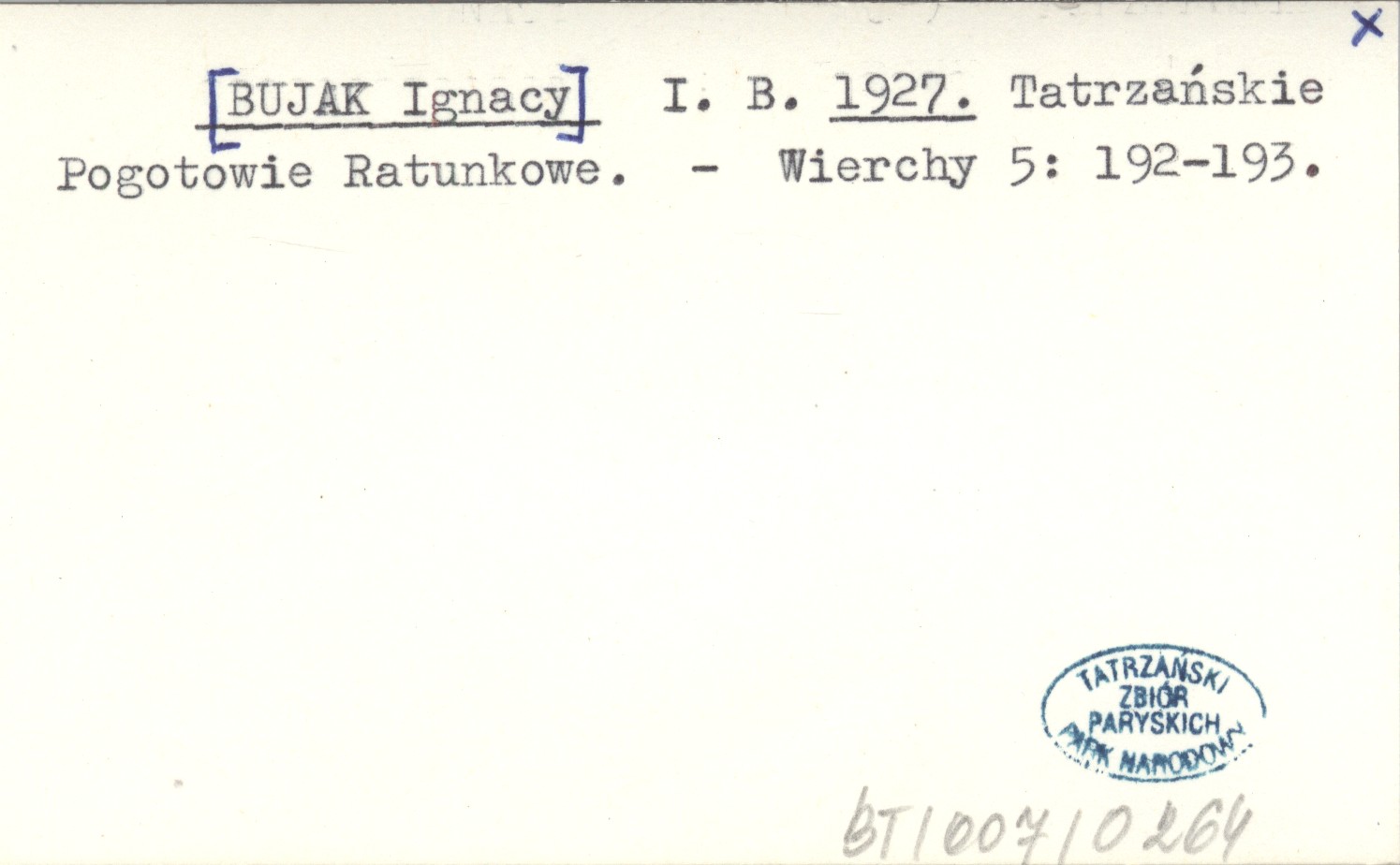 I. B. [BUJAK Ignacy] 1927 Tatrzańskie Pogotowie Ratunkowe.