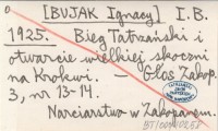 I. B. [BUJAK Ignacy] 1925 Bieg Tatrzański i otwarcie wielkiej skoczni na Krokwi.