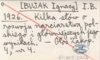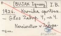 I. B. [BUJAK Ignacy] 1926 Kilka słów o rozwoju narciarstwa polskiego i główniejszych jego wynikach.