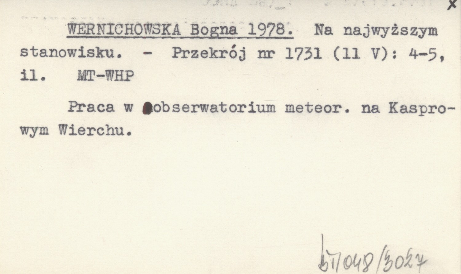 Przekrój, Nr 1731 (11 V): 4-5, il. Praca w obserwatorium meteor. na Kasprowym Wierchu.