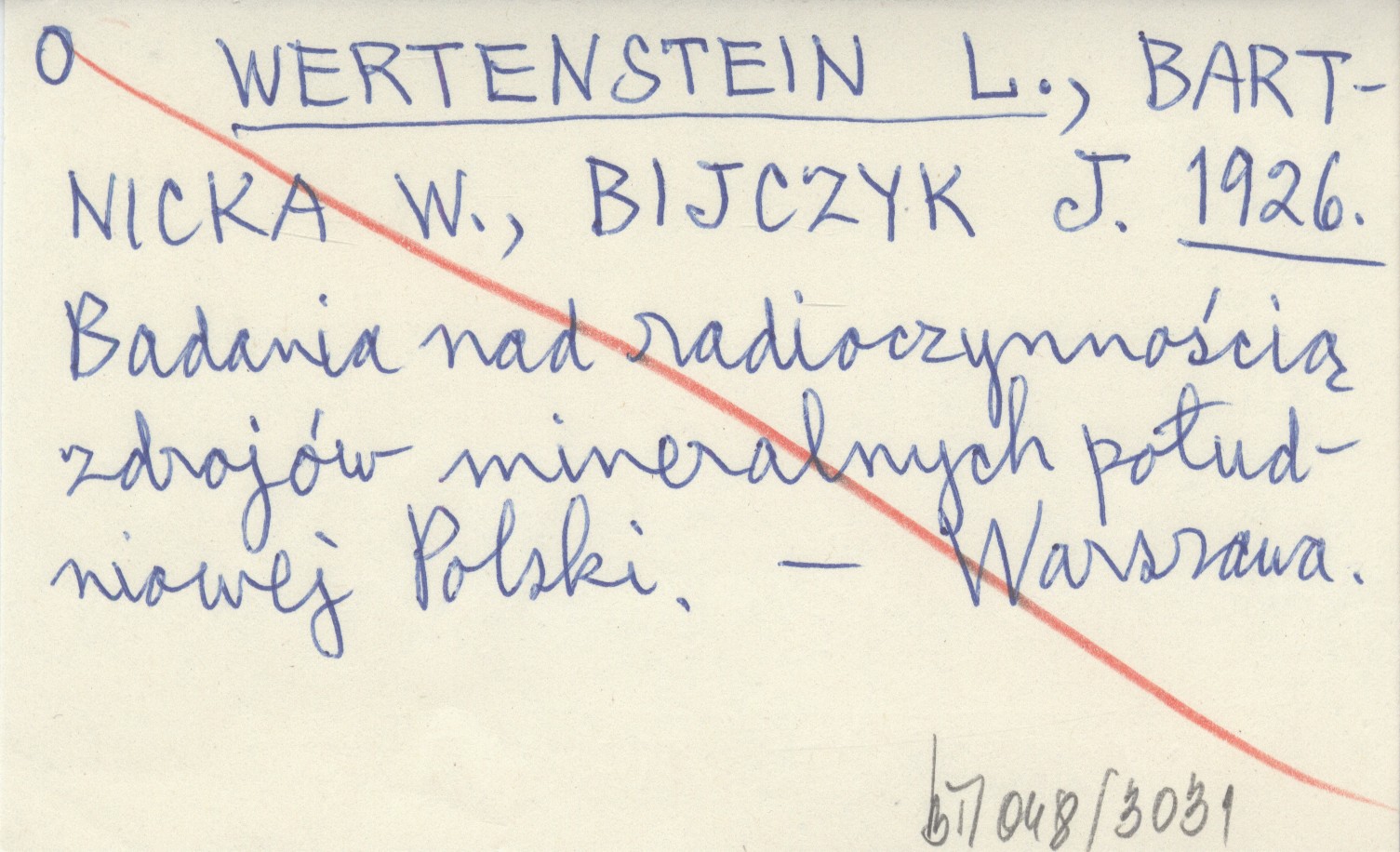 WERTENSTEIN L. BARTNICKA, W. ; BIJCZYK, J. ; 1926 Badania nad radioczynnością zdrojów mineralnych południowej Polski.