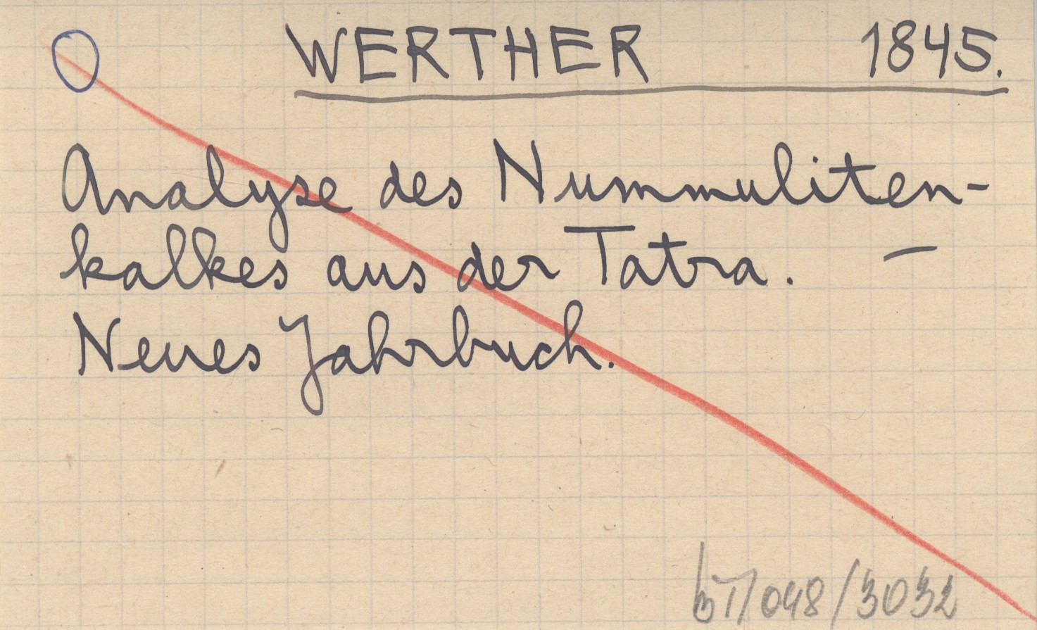 WERTHER 1845 Analyse des Nummulitenkalkes aus der Tatra.