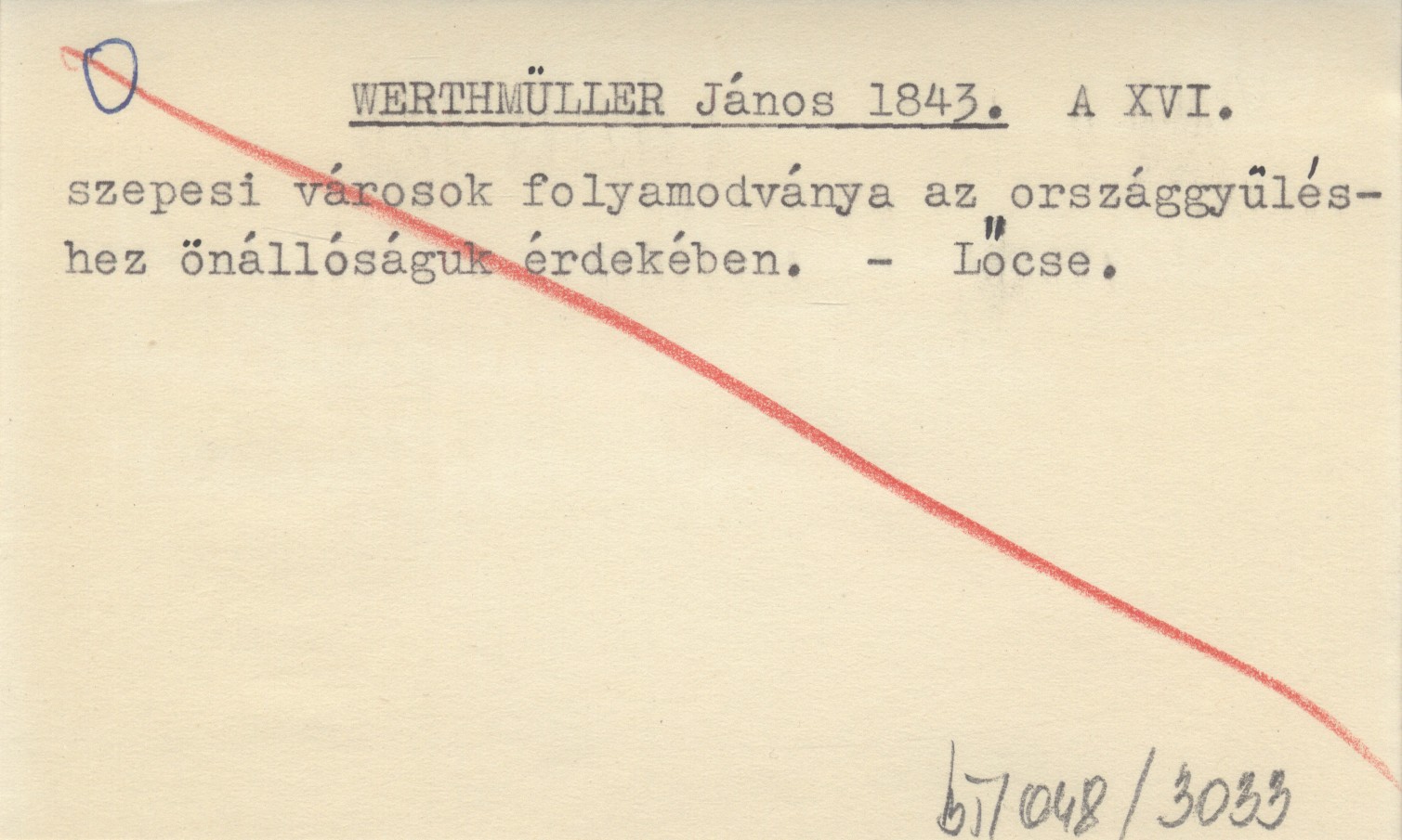 WERTHMÜLLER János 1843 A XVI. szepesi városok folyamodványa az országgyüléshez önállóságuk érdekében.