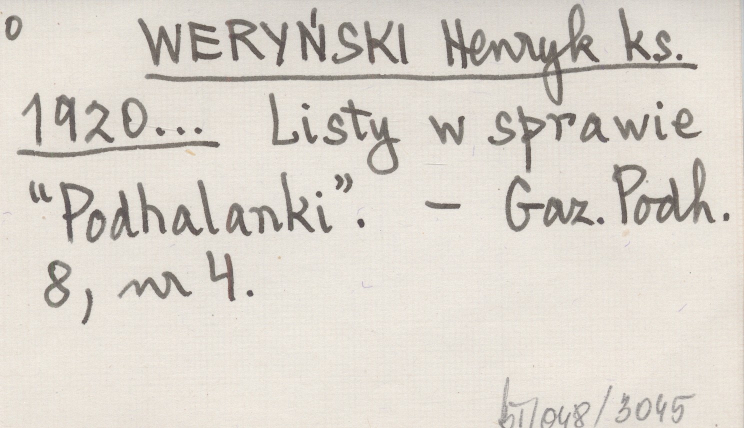 WERYŃSKI Henryk ks. 1920... Listy w sprawie "Podhalanki".