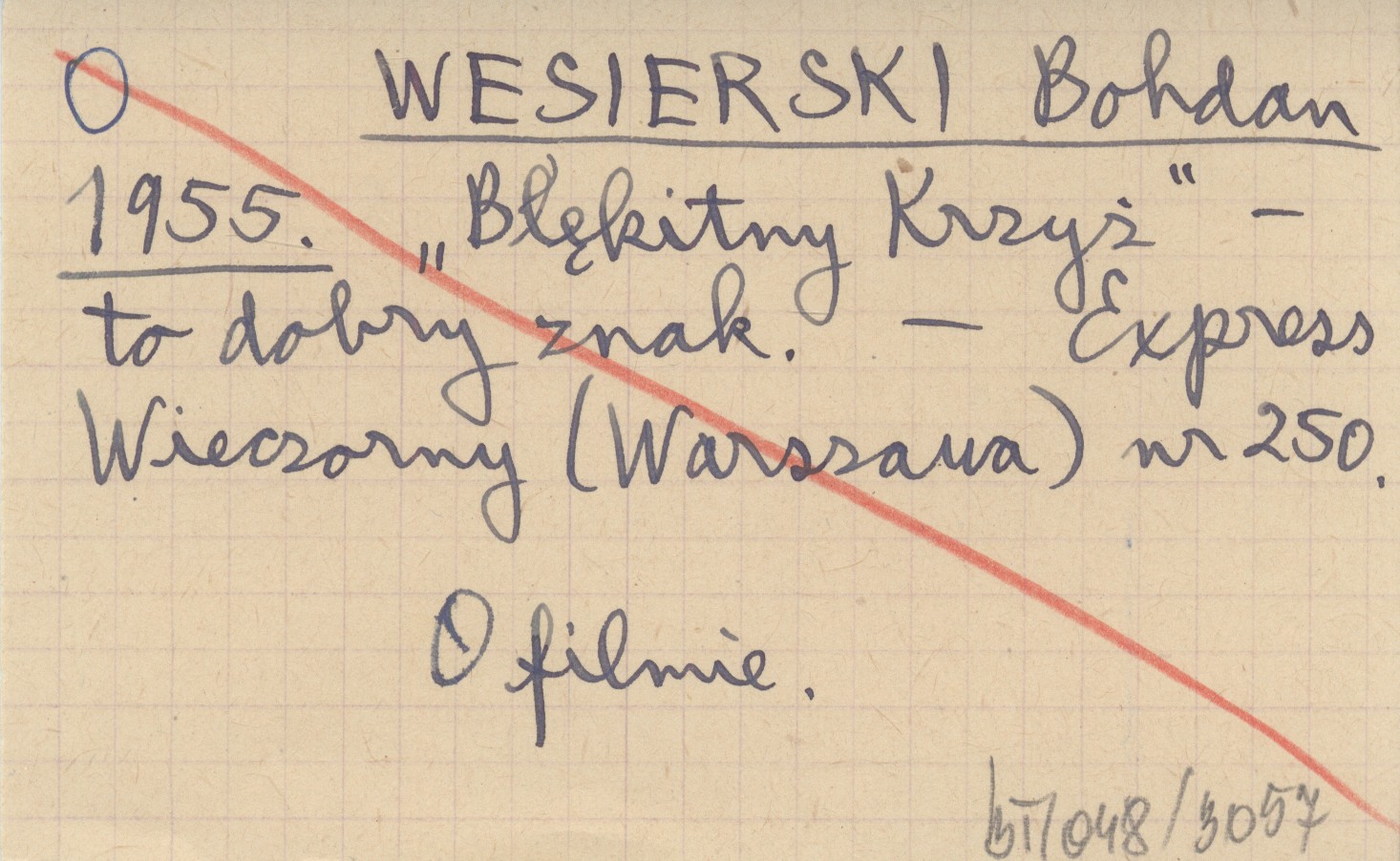 WESIERSKI Bohdan 1955 "Błękitny Krzyż" - to dobry znak.