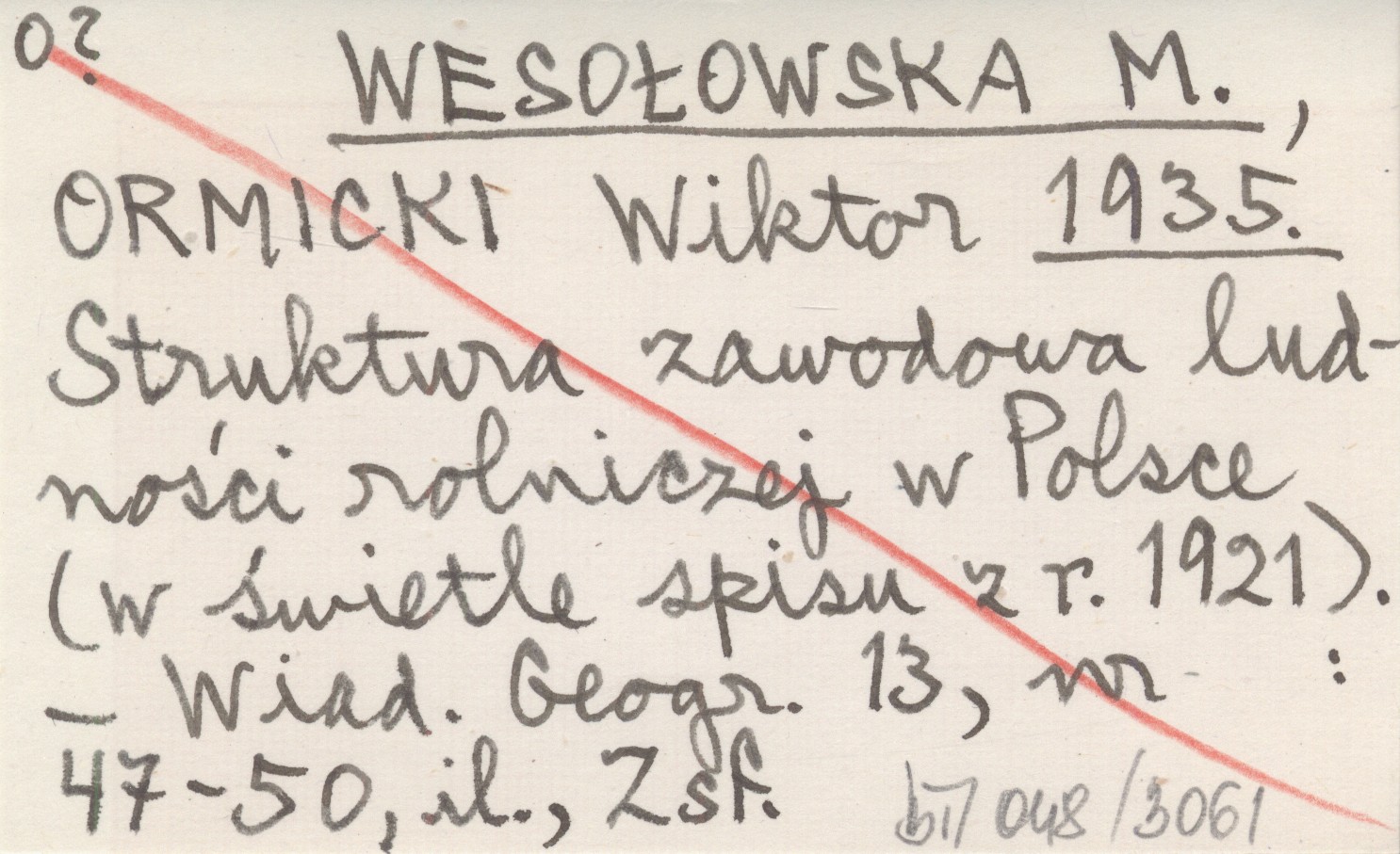 WESOŁOWSKA M. ORMICKI, Wiktor. ; 1935 Struktura zawodowa ludności rolniczej w Polsce (w świetle spisu z r. 1921).