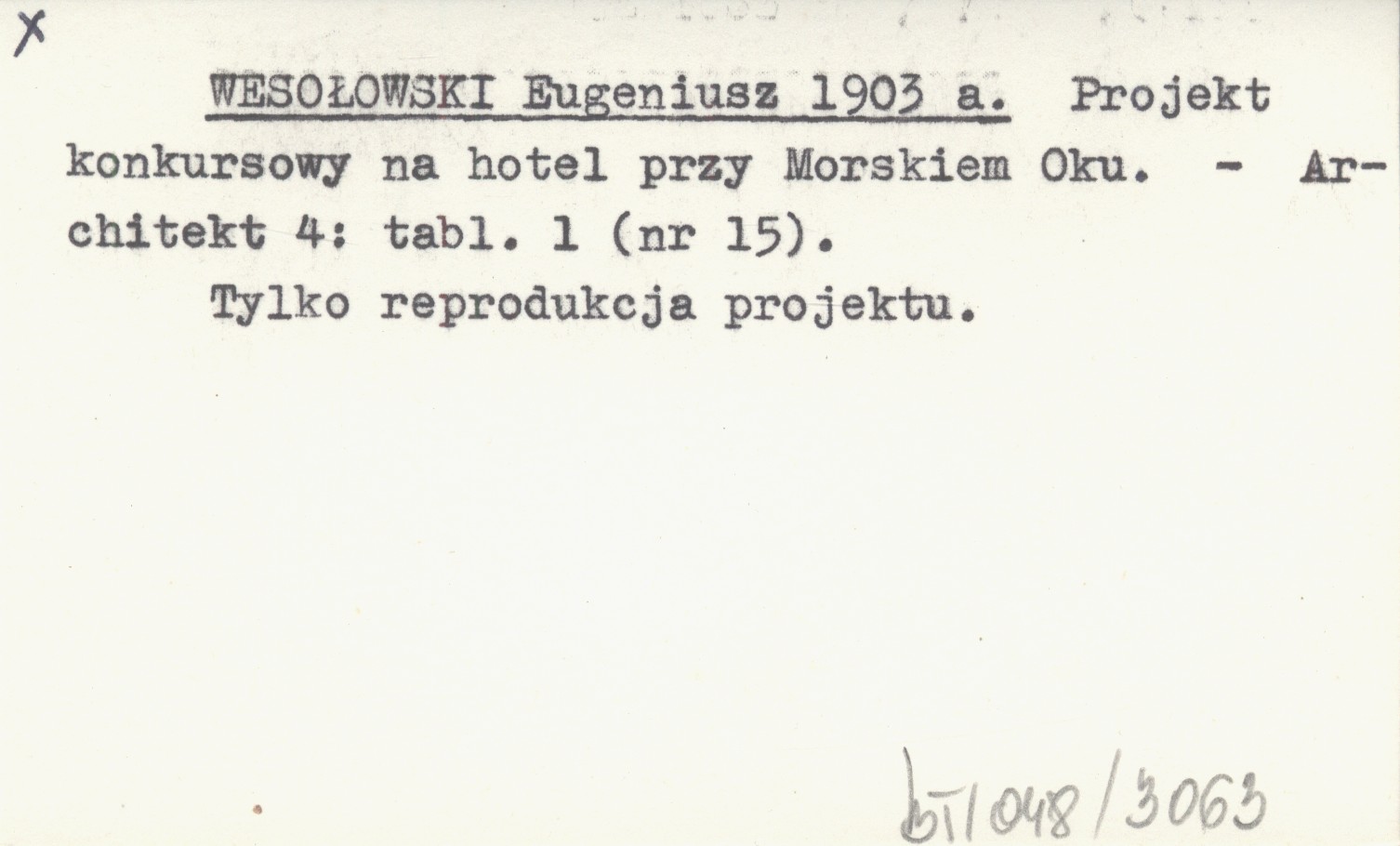 WESOŁOWSKI Eugeniusz 1903 a Projekt konkursowy na hotel przy Morskiem Oku.