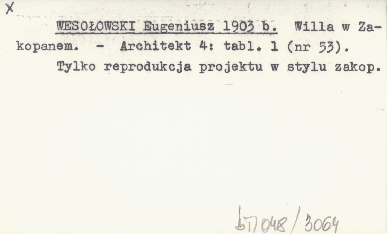 Architekt, 4: 1 k. tabl. (nr 53). Tylko reprodukcja projektu w stylu zakop.