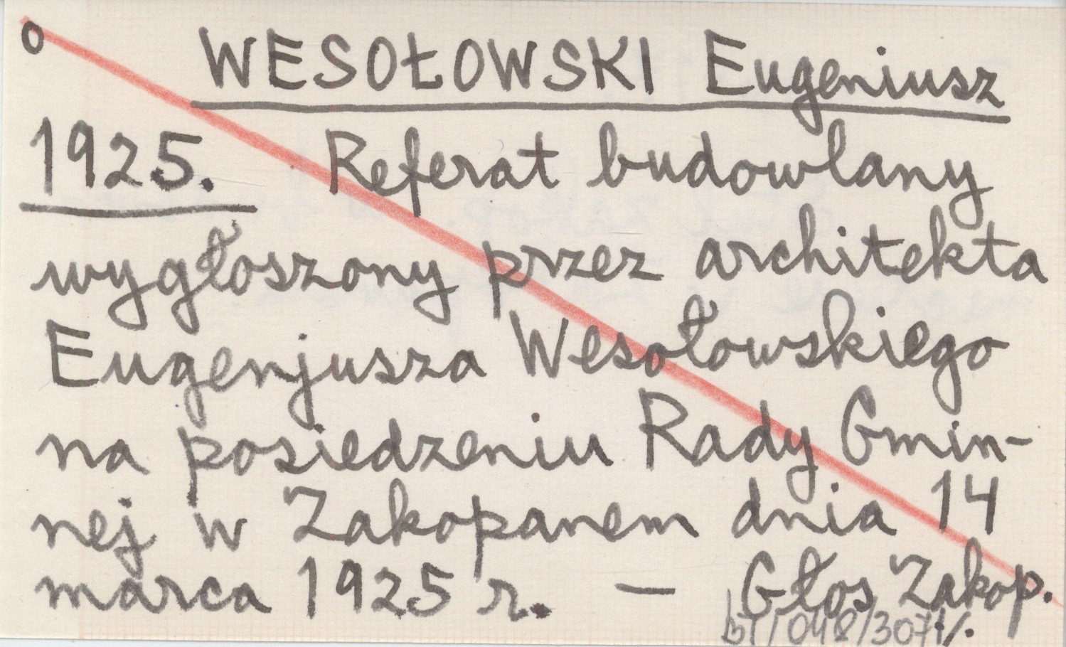 WESOŁOWSKI Eugeniusz 1925 Referat budowlany wygłoszony przez architekta Eugenjusza Wesołowskiego na posiedzeniu Rady Gminnej w Zakopanem dnia 14 marca 1925 r.