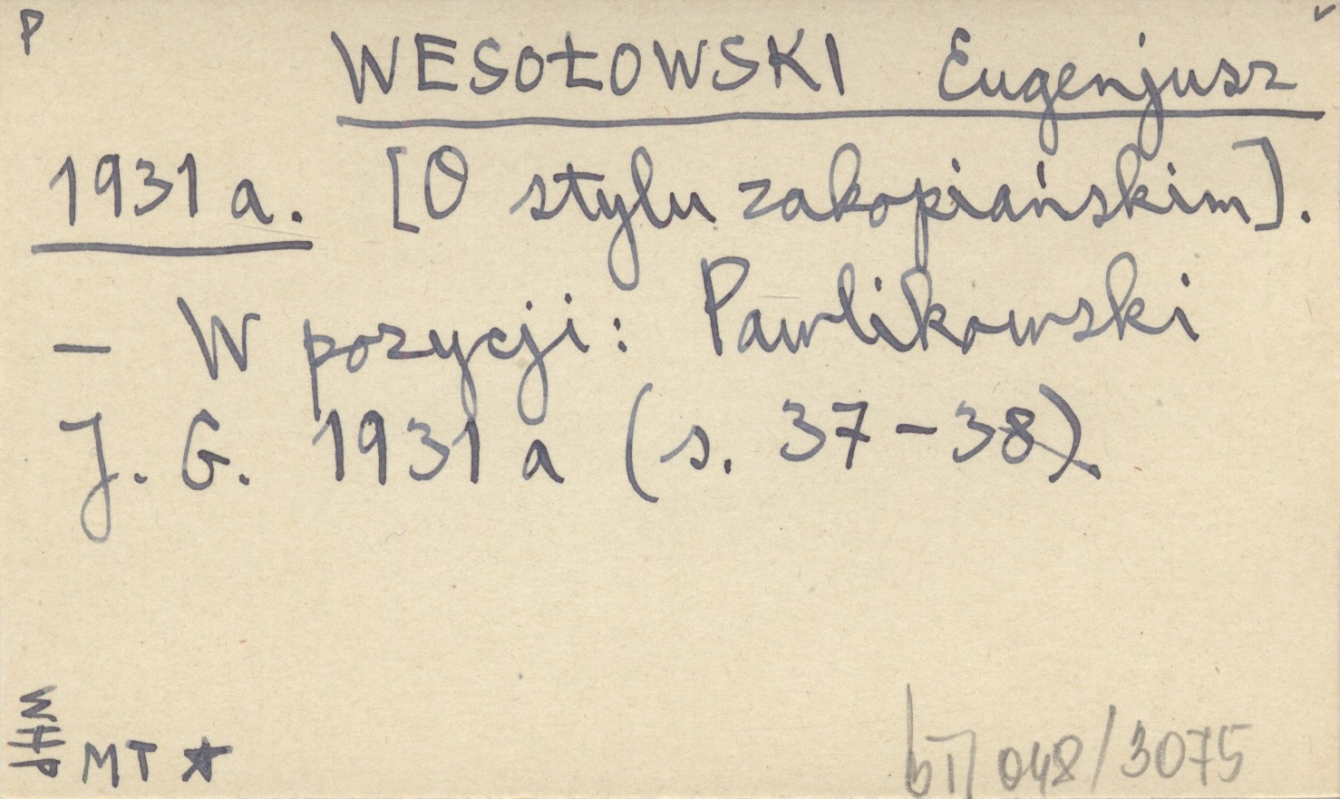WESOŁOWSKI Eugenjusz 1931 a [O stylu zakopiańskim].
