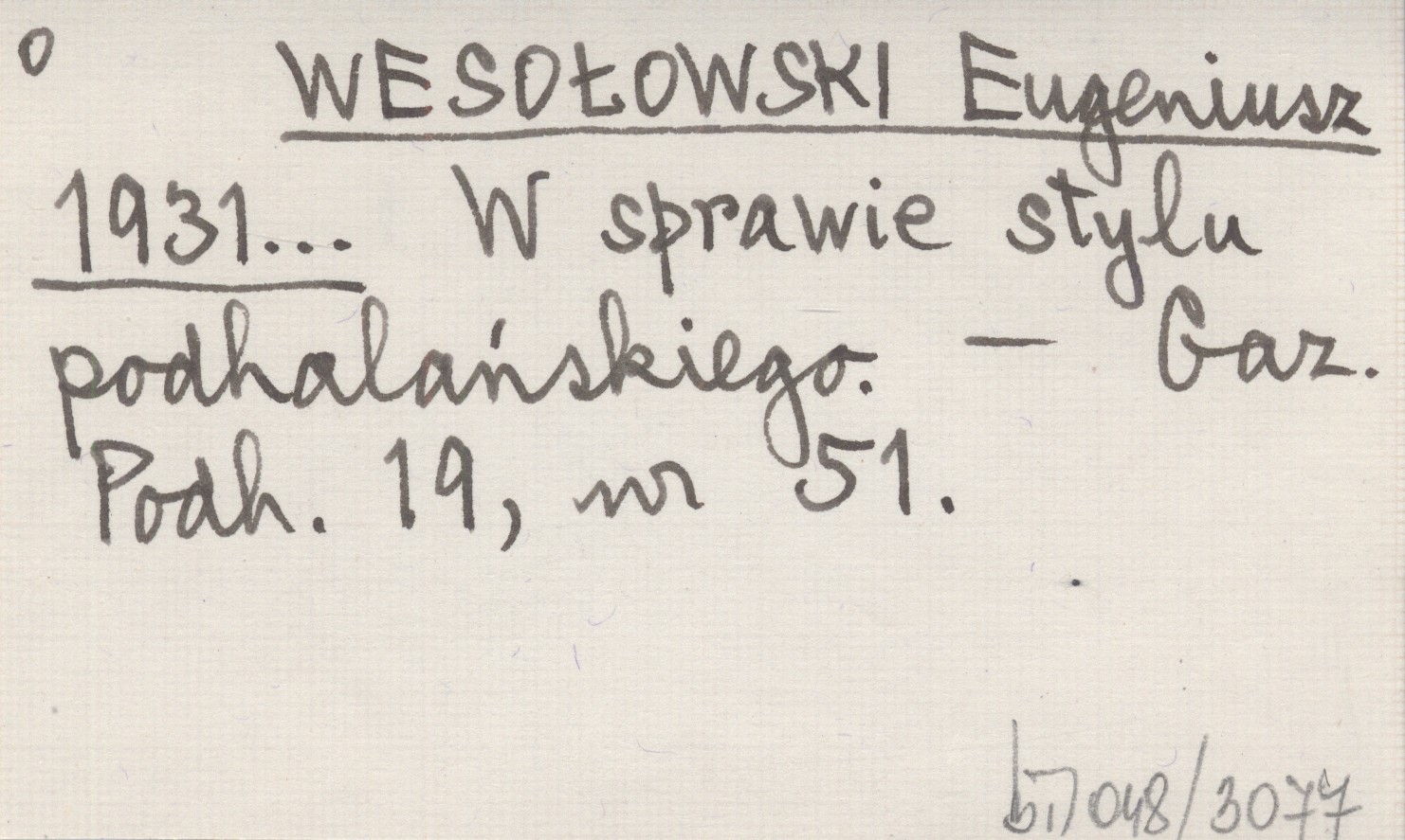 WESOŁOWSKI Eugeniusz 1931... W sprawie stylu podhalańskiego.