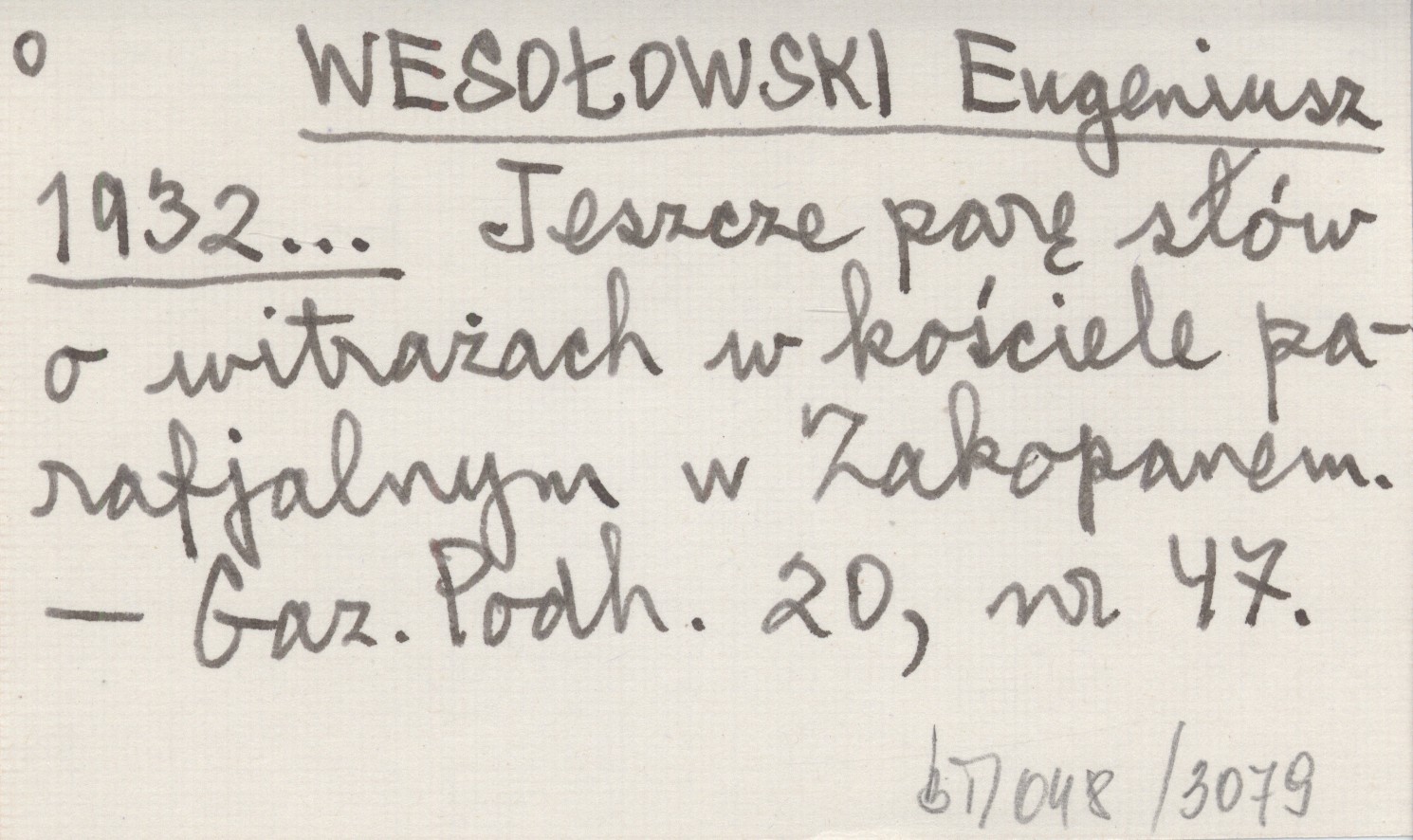 WESOŁOWSKI Eugeniusz 1932... Jeszcze parę słów o witrażach w kościele parafjalnym w Zakopanem.