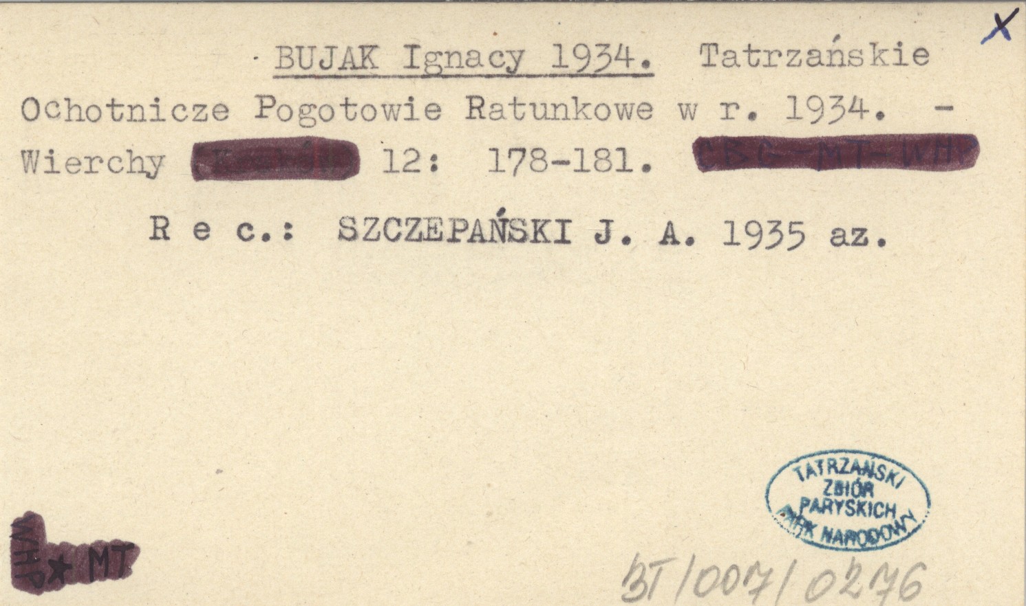 Wierchy, 12: 178-181. REC: SZCZEPAŃSKI J. A. 1935 az