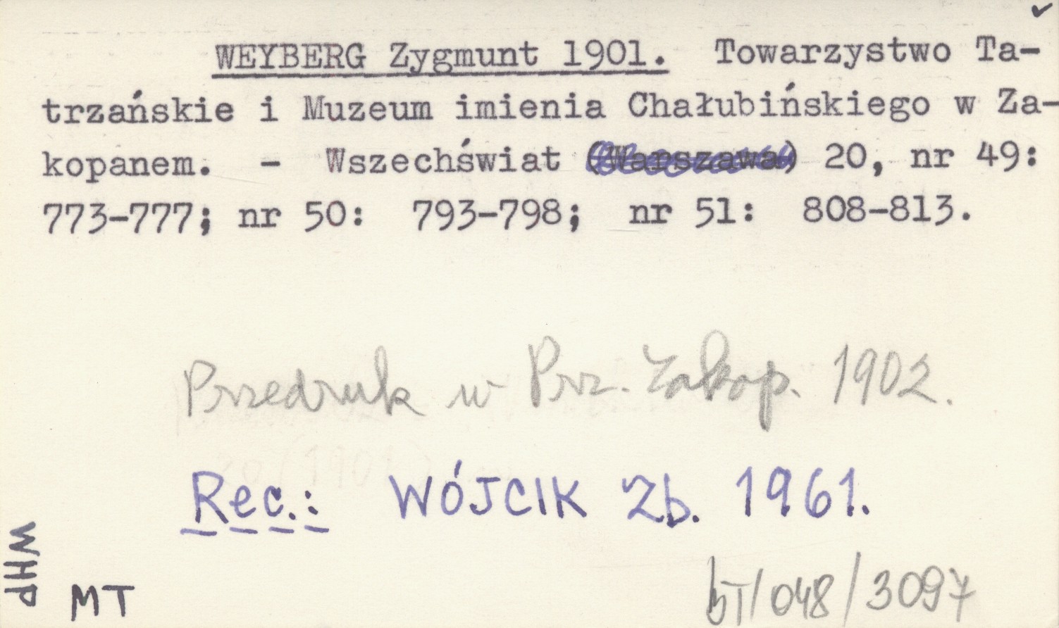 WEYBERG Zygmunt 1901 Towarzystwo Tatrzańskie i Muzeum imienia Chałubińskiego w Zakopanem.