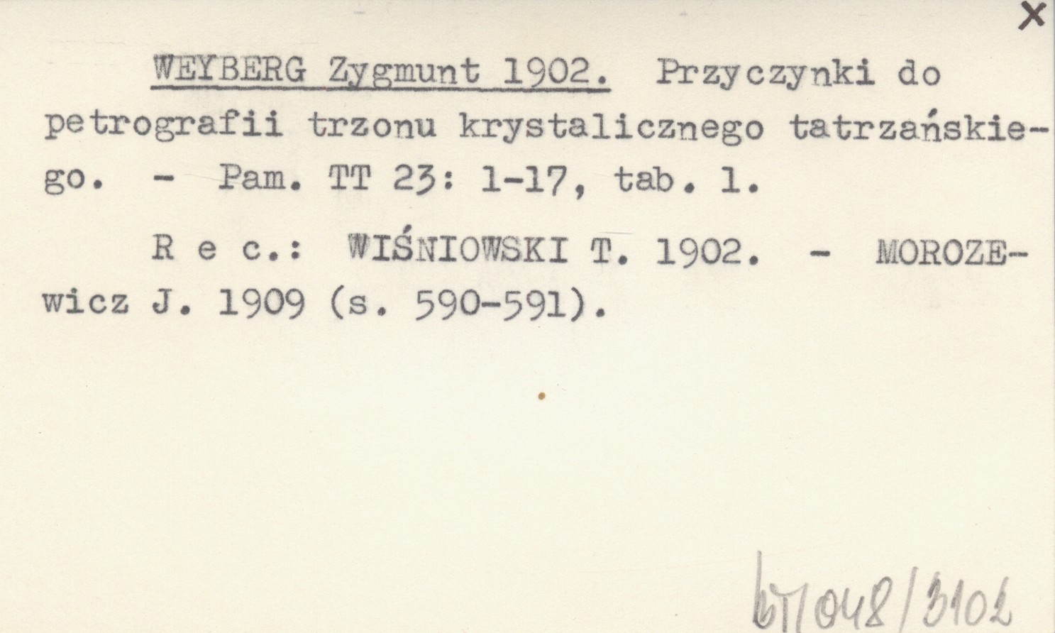 WEYBERG Zygmunt 1902 Przyczynki do petrografii trzonu krystalicznego tatrzańskiego.