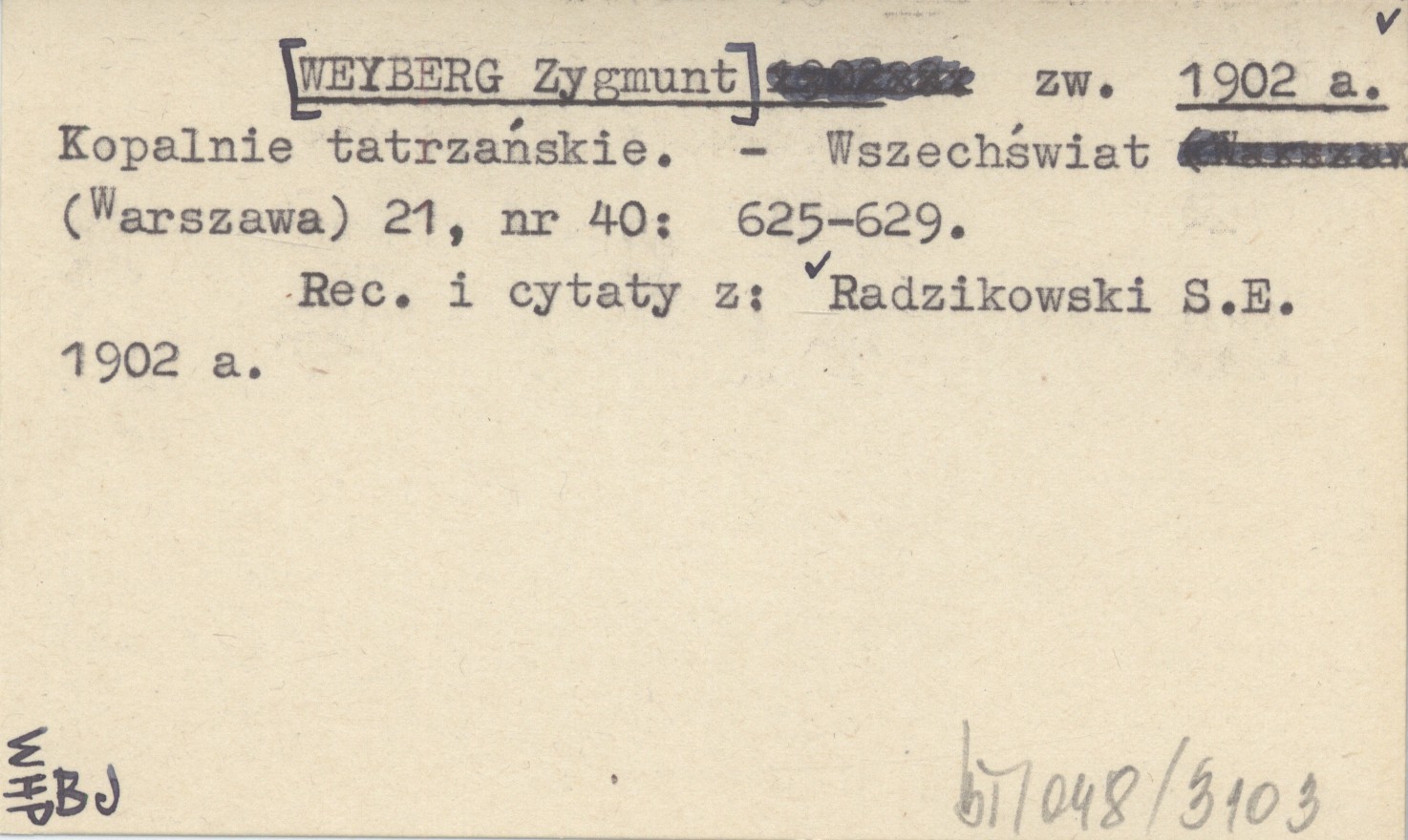 zw. [WEYBERG Zygmunt] 1902 a Kopalnie tatrzańskie.
