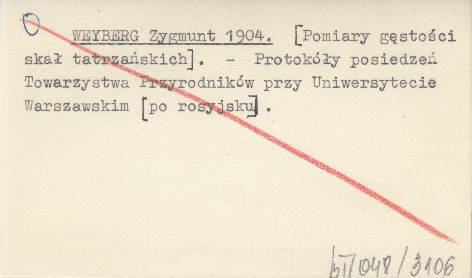 WEYBERG Zygmunt 1904 [Pomiary gęstości skał tatrzańskich].