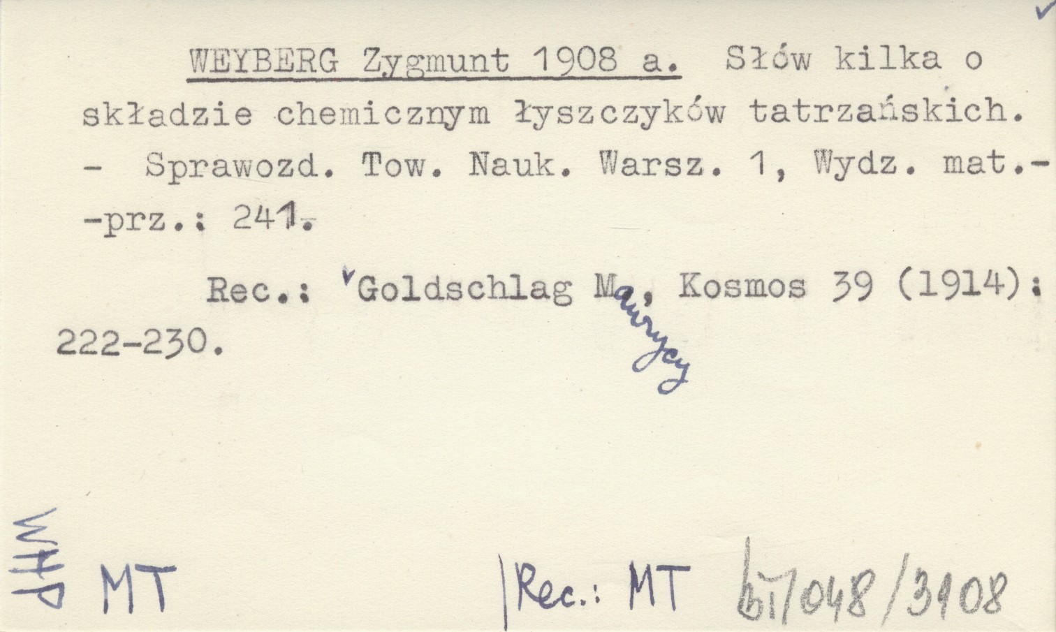 REC: GOLDSCHLAG Maurycy, Kosmos 39 (1914): 222-230.