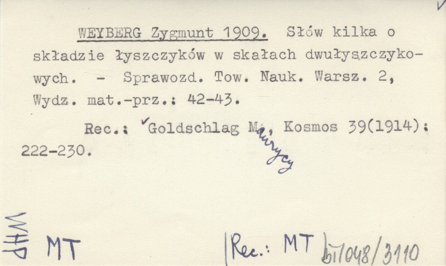 REC: GOLDSCHLAG Maurycy, Kosmos 39 (1914): 222-230.