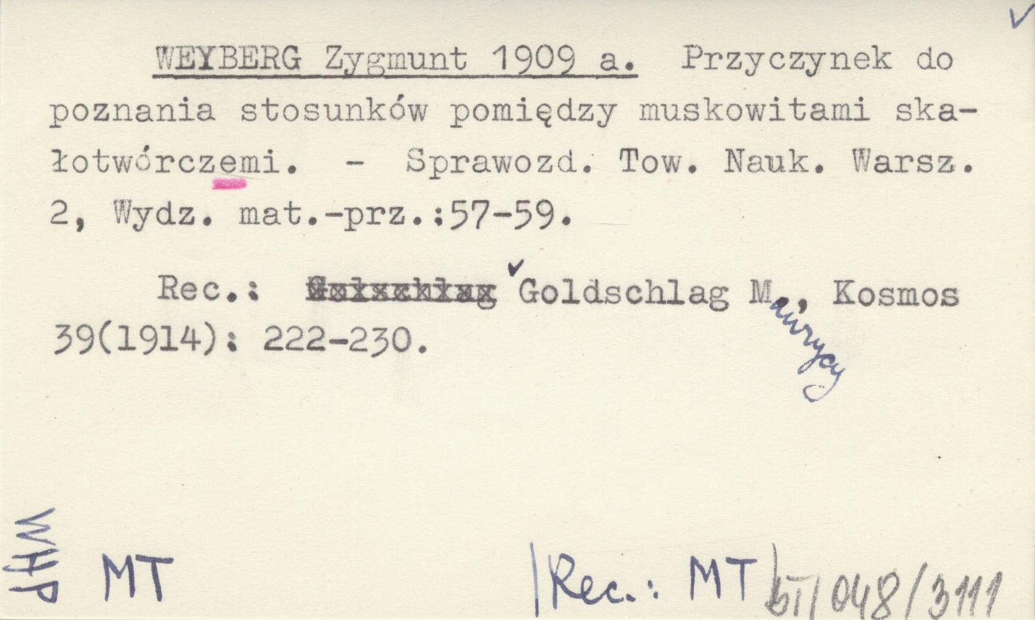 REC: GOLDSCHLAG Maurycy, Kosmos 39 (1914): 222-230.