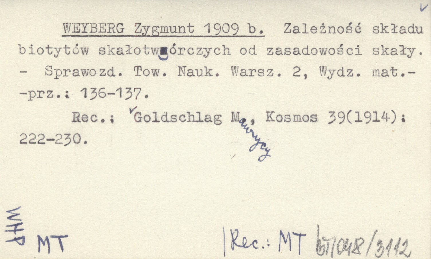 REC: GOLDSCHLAG Maurycy, Kosmos 39 (1914): 222-230.