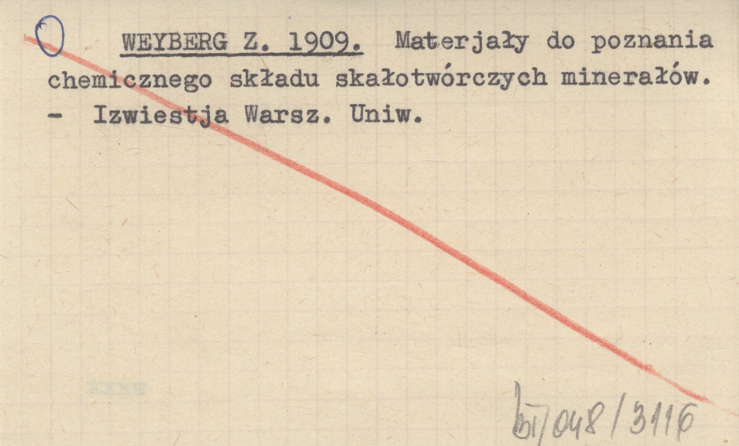 WEYBERG Z. 1909 Materjały do poznania chemicznego składu skałotwórczych minerałów.