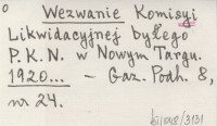 Wezwanie Komisyi Likwidacyjnej byłego P. K. N. w Nowym Targu. 1920...