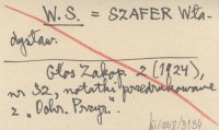 W. S. SZAFER Władysław Głos Zakopiański 2 (1924), nr 32. notatki przedrukowane z "Ochr. Przyr.".