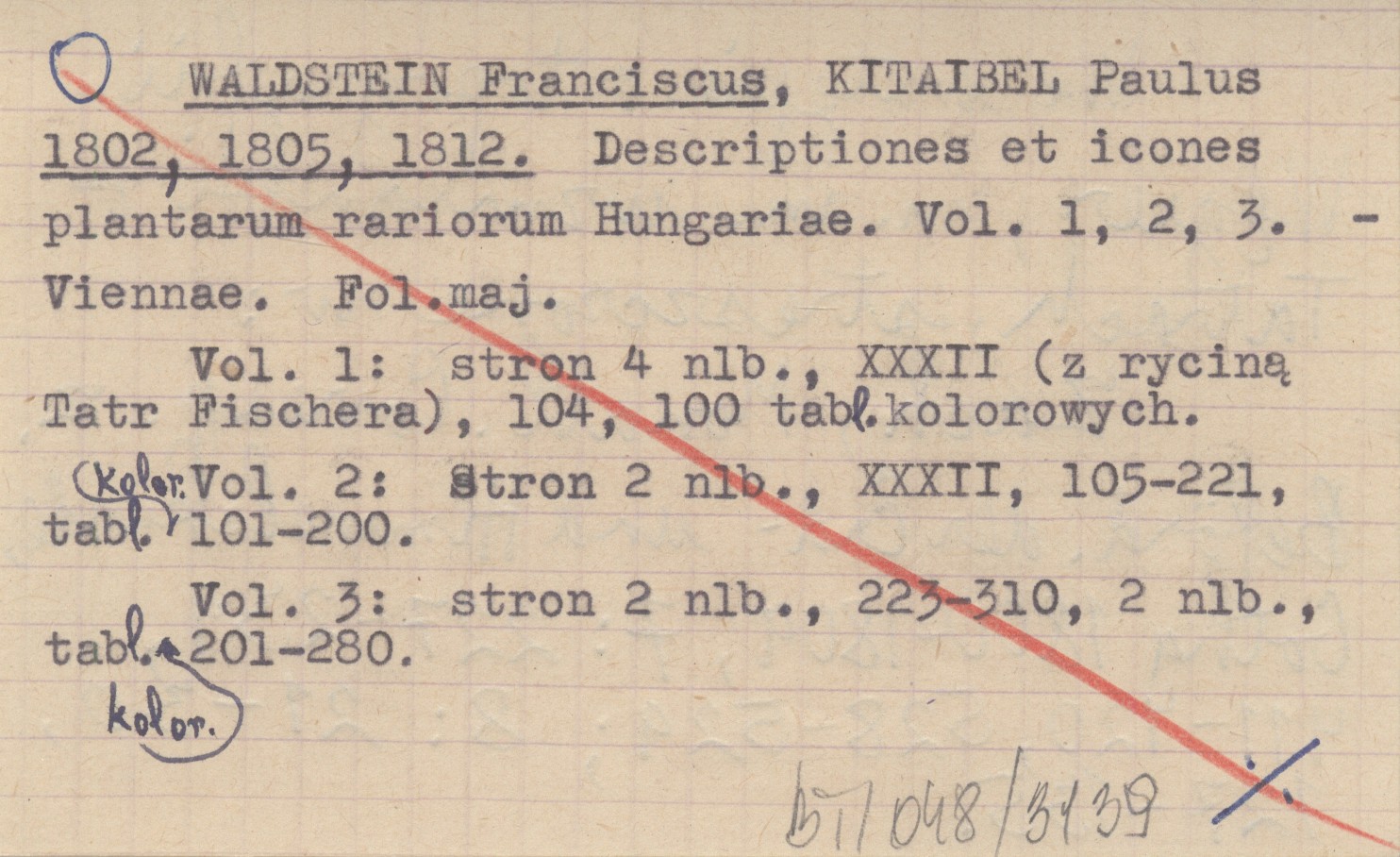 WALDSTEIN Franciscus KITAIBEL, Paulus. ; 1802 Descriptiones et icones plantarum rariorum Hungariae. Vol. 1, 2, 3.