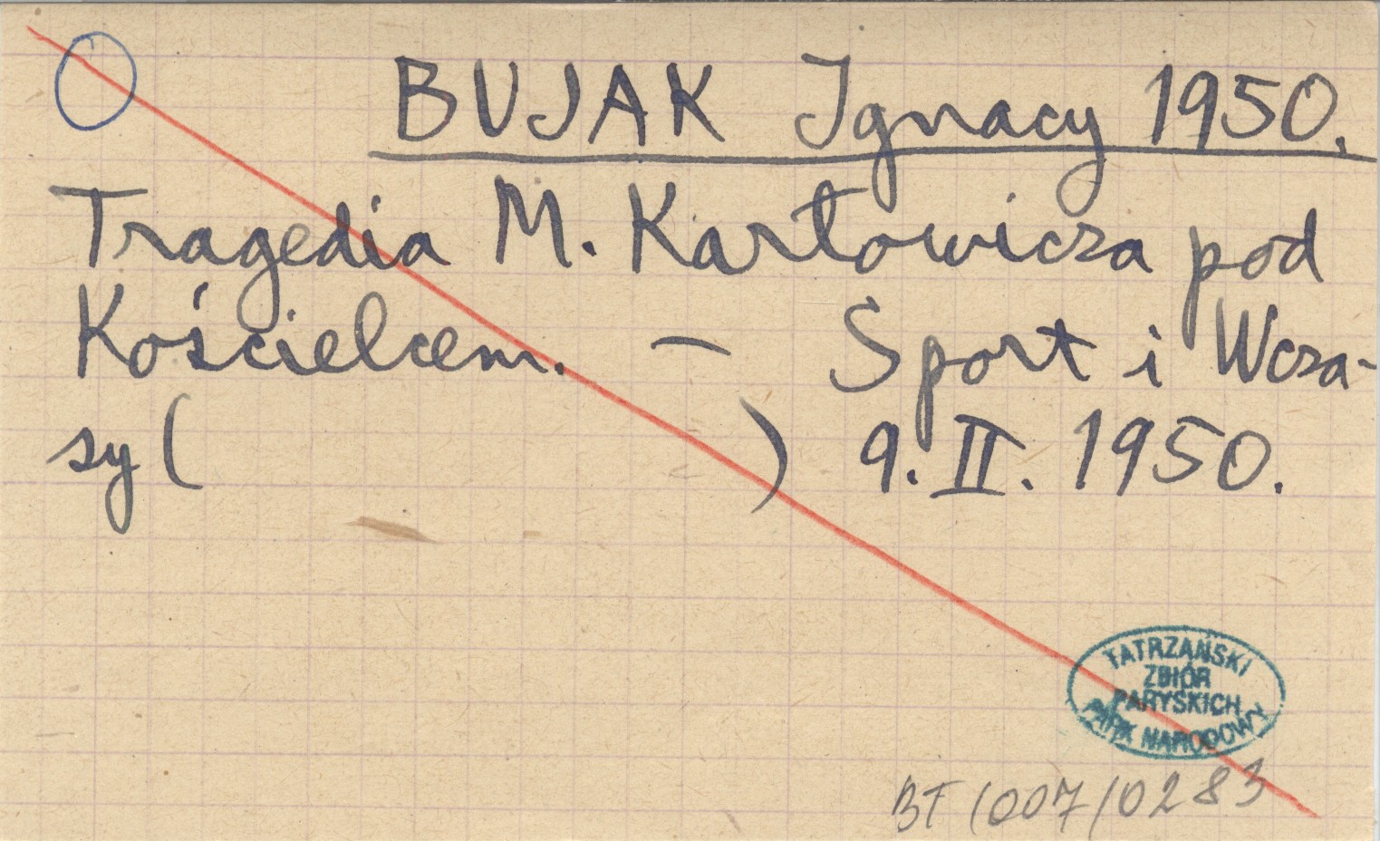 BUJAK Ignacy 1950 Tragedia M. Karłowicza pod Kościelcem.