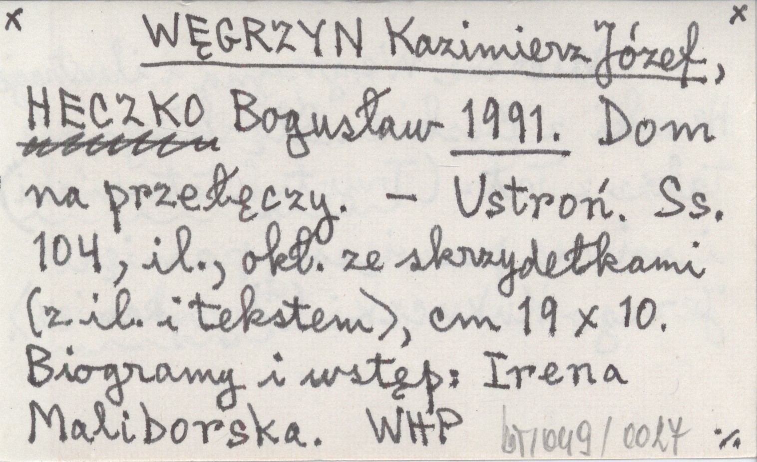 WĘGRZYN Kazimierz Józef HECZKO, Bogusław. ; 1991 Dom na przełęczy.