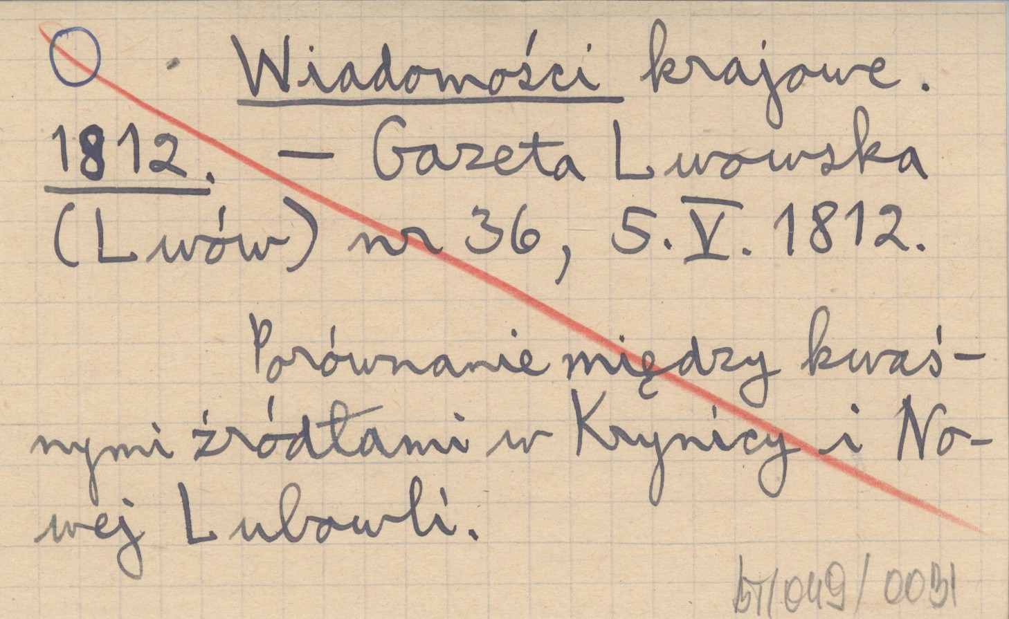 Gazeta Lwowska (Lwów) , Nr 36, 5 V 1812. Porównanie między kwaśnymi źródłami w Krynicy i Nowej Lubowli.