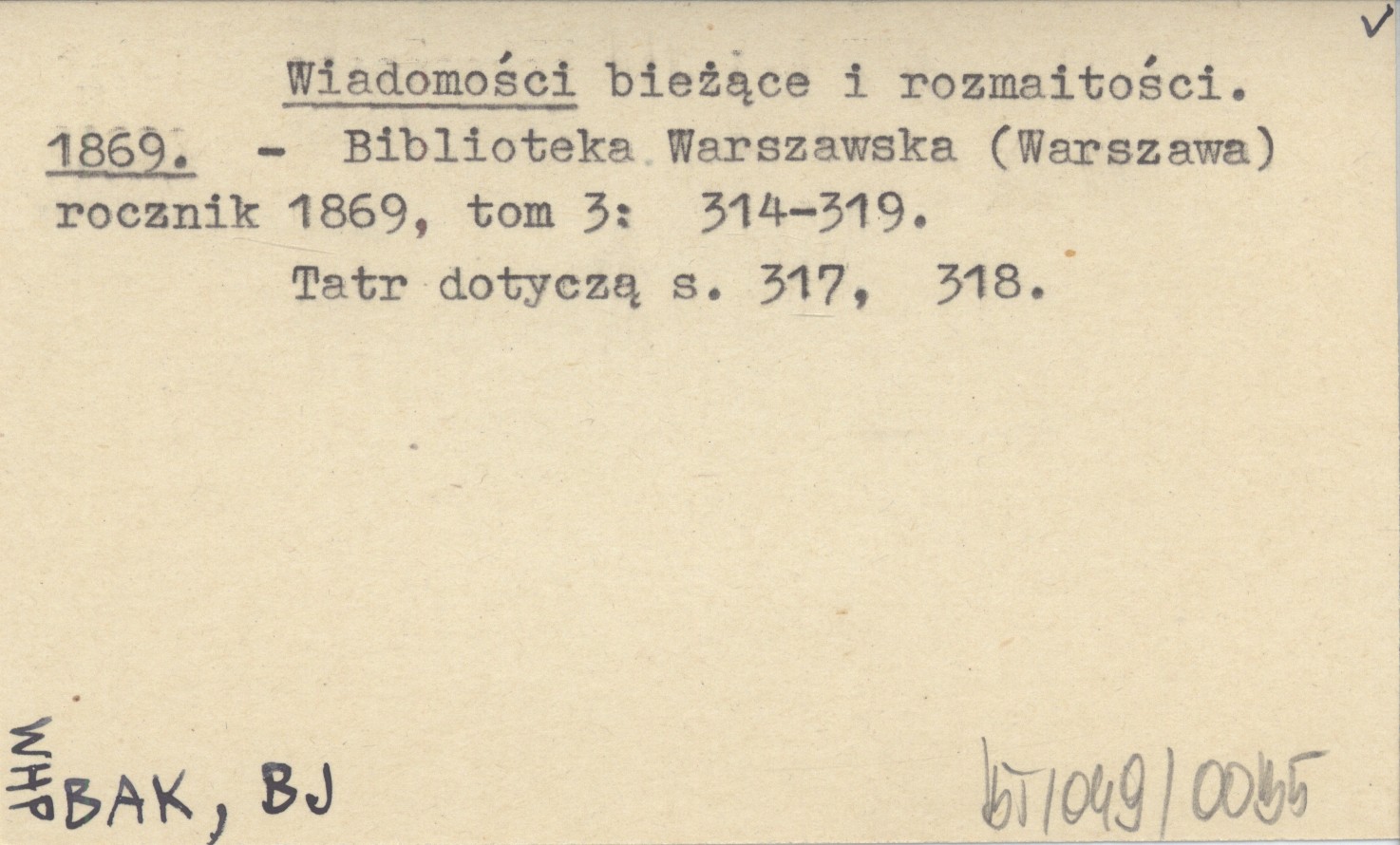 Biblioteka Warszawska (Warszawa) , T. 3: 314-319. Tatr dotyczą s. 317, 318.