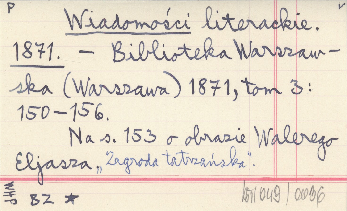 Biblioteka Warszawska (Warszawa) , T. 3: 150-156. Na s. 153 o obrazie Walerego Eljasza "Zagroda tatrzańska".