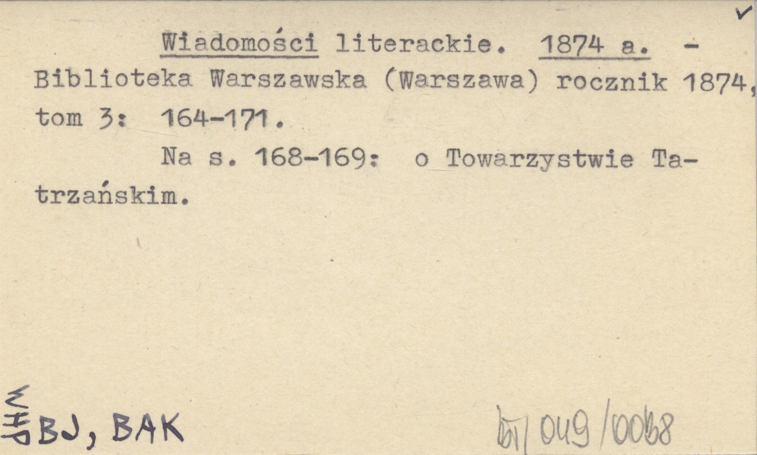 Biblioteka Warszawska (Warszawa) , T. 3: 164-171. Na s. 168-169: o Towarzystwie Tatrzańskim.