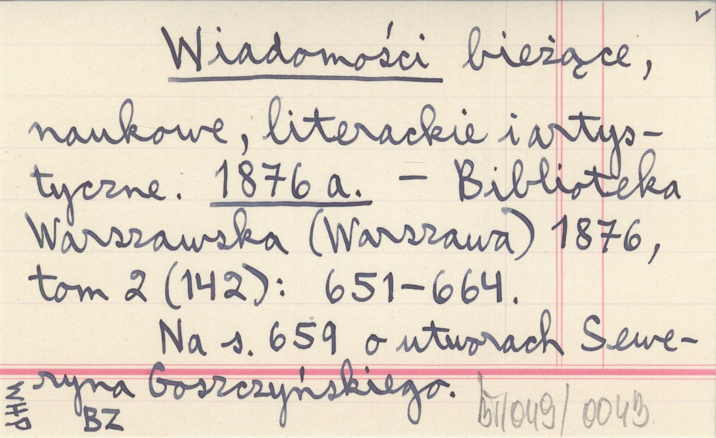 Biblioteka Warszawska (Warszawa) , T. 2 (142): 651-664. Na s. 659 o utworach Seweryna Goszczyńskiego.