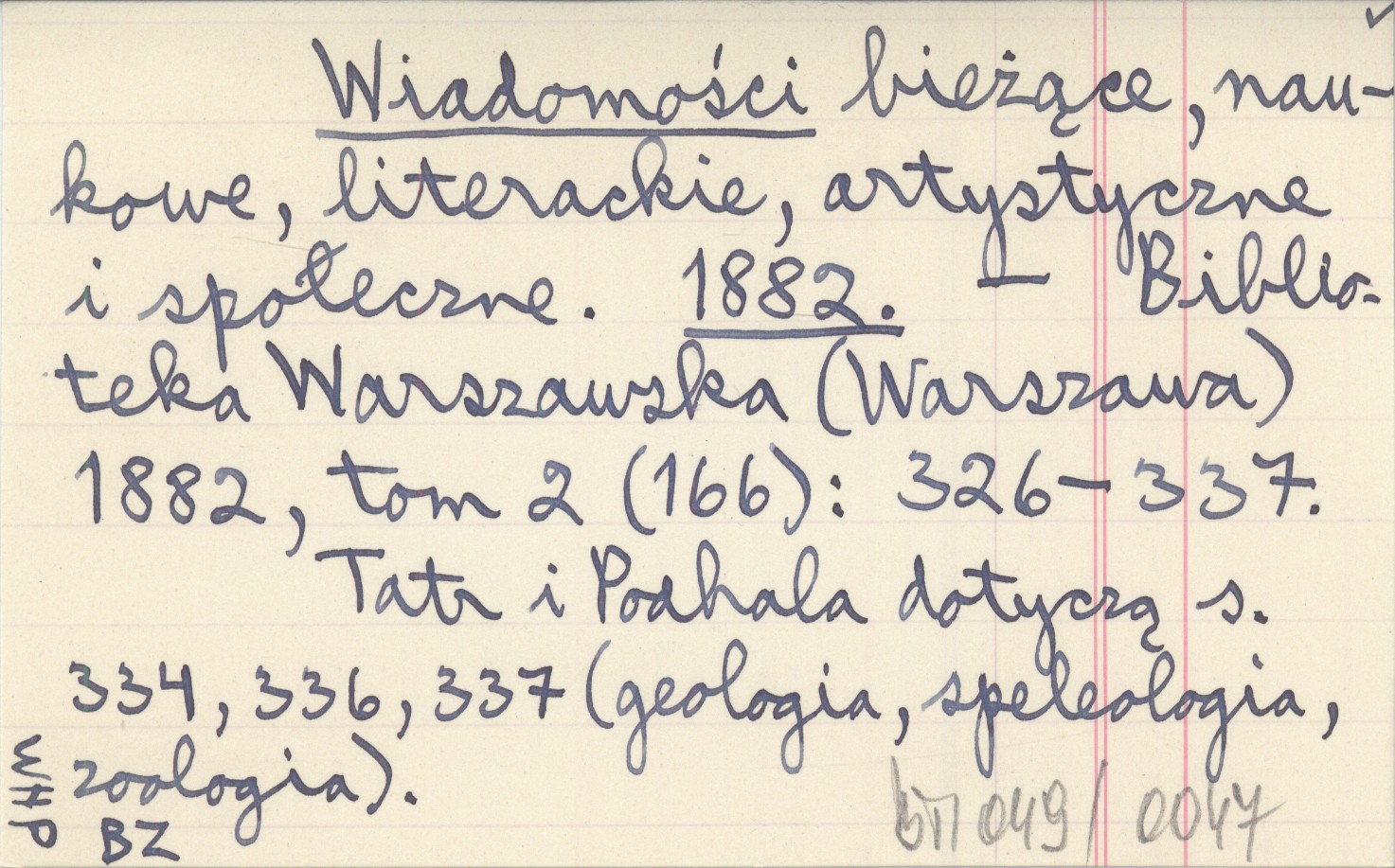 Biblioteka Warszawska (Warszawa) , T. 2 (166): 326-337. Tatr i Podhala dotyczą s. 334, 336, 337 (geologia, speleologia, zoologia).