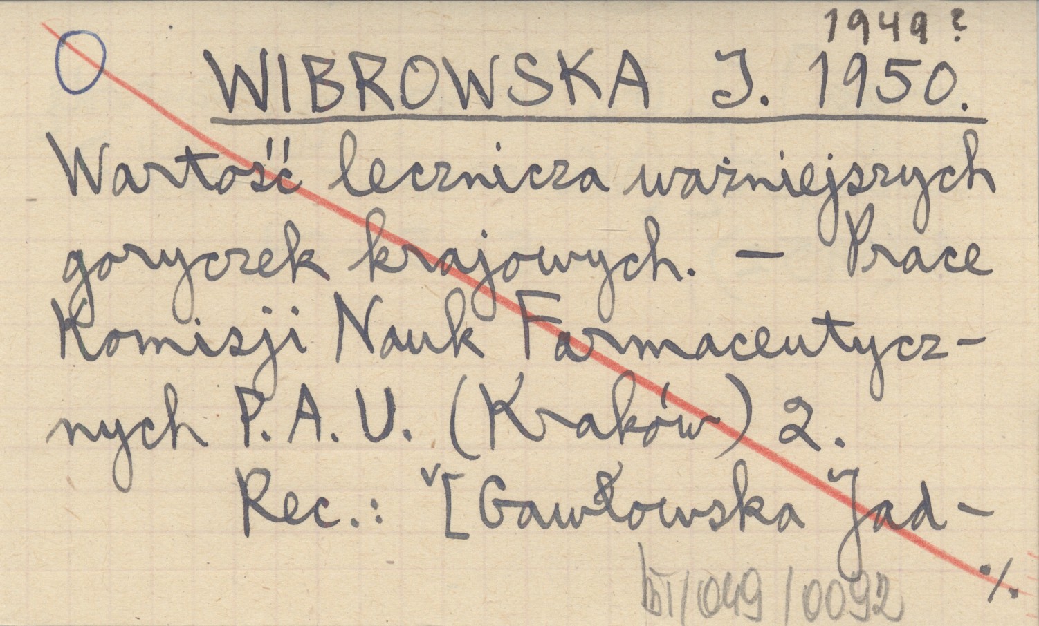 Prace Komisji Nauk Farmaceutycznych P.A.U. (Kraków) , 2. 1949? REC: [GAWŁOWSKA Jadwiga] J. G., Chrońmy Przyrodę Ojczystą (Warszawa-Kraków) 8 (1952), nr 5: 52-54.