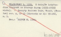WIATROWSKI L. 1959 Z dziejów latyfundium klarysek ze Starego Sącza (XIII-XVIII wieku).
