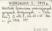 WIBROWSKA I. 1949 Wartość lecznicza ważniejszych goryczek krajowych.