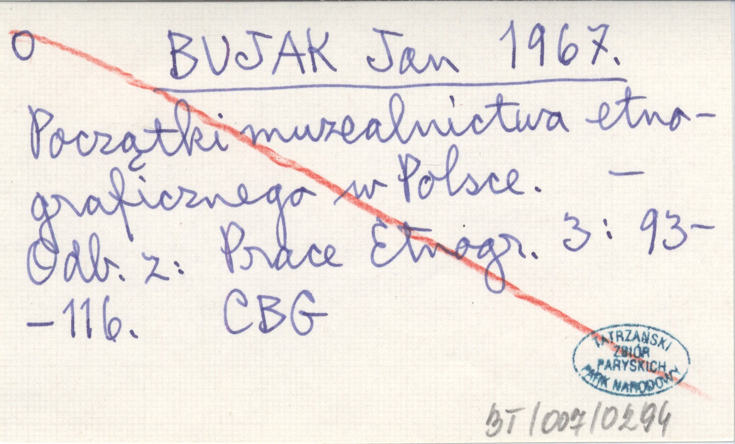 BUJAK Jan 1967 Początki muzealnictwa etnograficznego w Polsce.