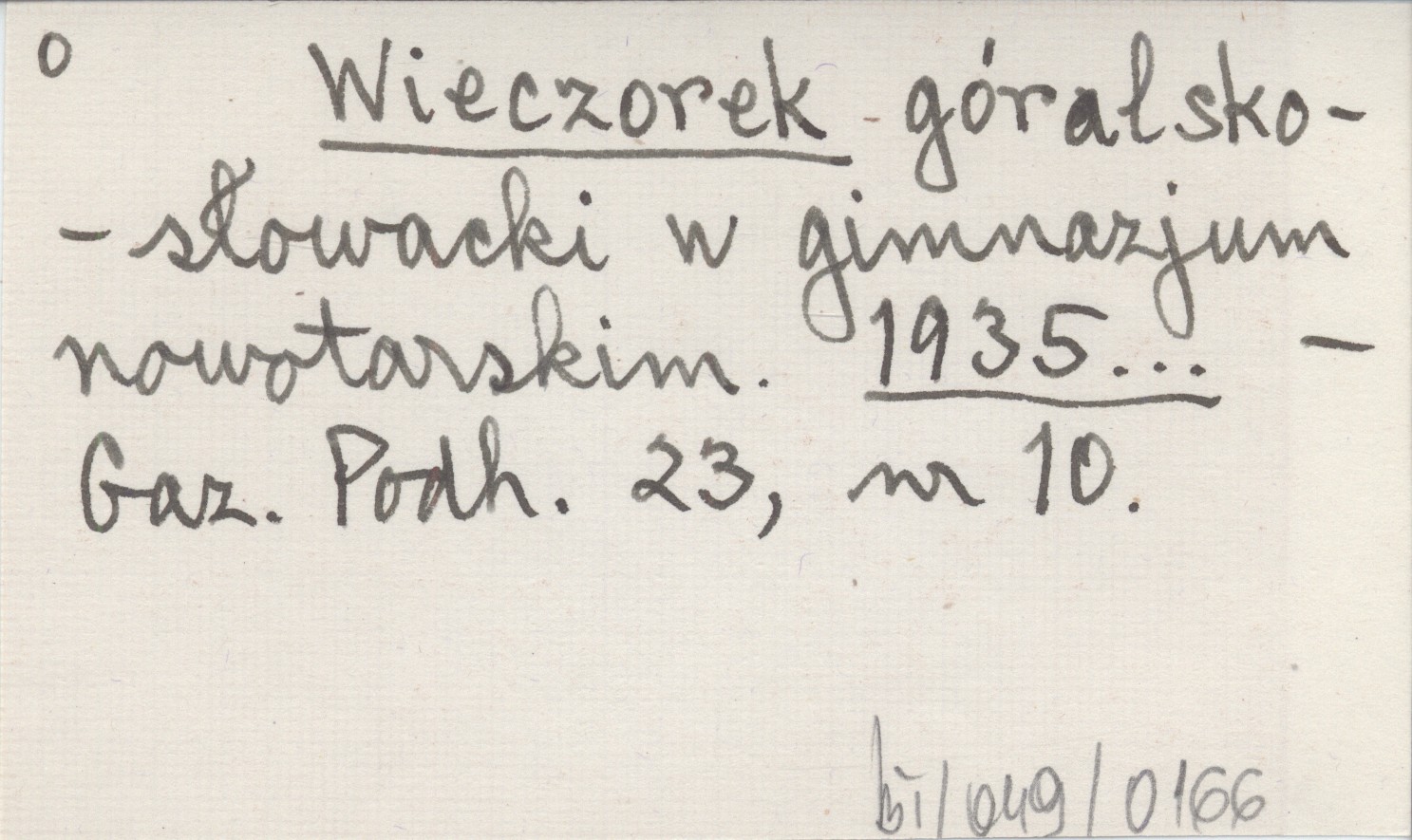 Wieczorek góralsko-słowacki w gimnazjum nowotarskim. 1935...