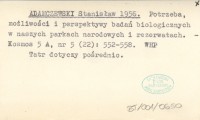 ADAMCZEWSKI Stanisław 1956 Potrzeba, możliwości i perspektywy badań biologicznych w naszych parkach narodowych i rezerwatach.