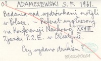 ADAMCZEWSKI S. F. 1961 Badania nad wędrówkami motyli w Polsce.