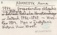 ADAMCZYK Anna 1974... Gospodarstwo chłopskie na Podhalu w latach 1772-1848.