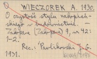 WIECZOREK A. 1930 O czystość stylu zakopiańskiego w budownictwie.