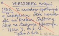 WIECZOREK Antoni 1930 Z zawodów sportowych w Zakopanem. Skok narciarski na Krokwi. Skjöring. Skok na stadjonie hipicznym.